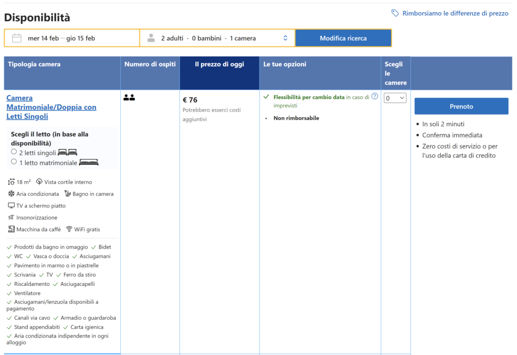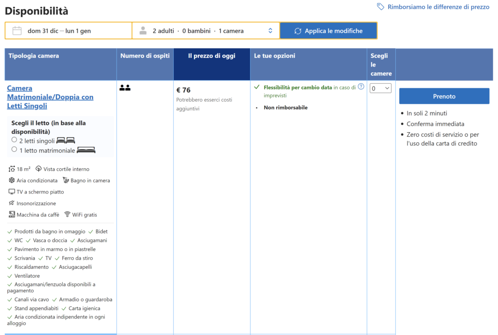 | 🛫 6 gennaio • • • 🛬 7 gennaio | Camera matrimoniale a 38€ a persona VAI ALL’OFFERTA | |||