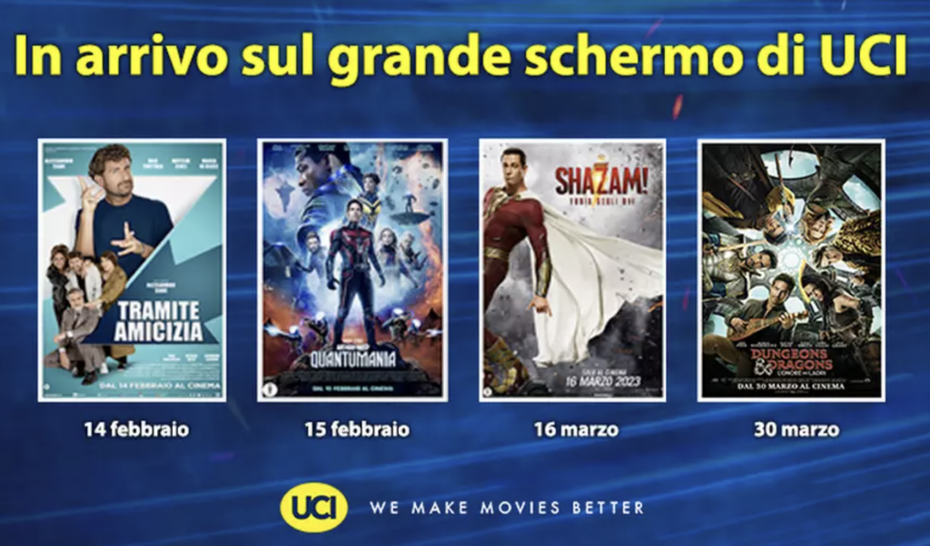 Per vedere l’esatta programmazione nelle sale UCI Cinema ti basta andare sul sito di UCI Italia. Per conoscere il cinema UCI più vicino a te ti consigliamo di consultare la lista completa.