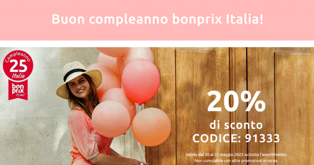 25 anni di Bonprix: 20% di sconto su tutto inserendo il codice esclusivo