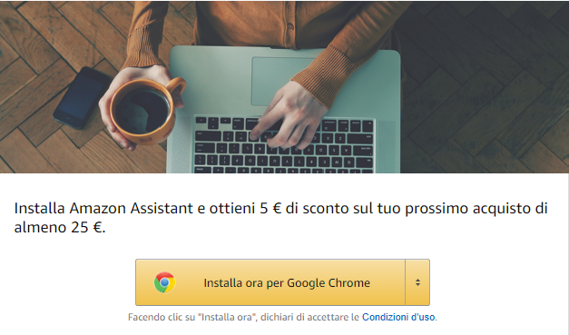 Amazon regala uno sconto di 5€ con la sola installazione di Amazon Assistant!