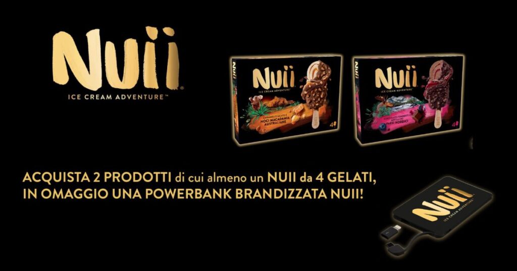 Acquista 2 confezioni di gelati Nuii e ottieni un Powerbank in omaggio!