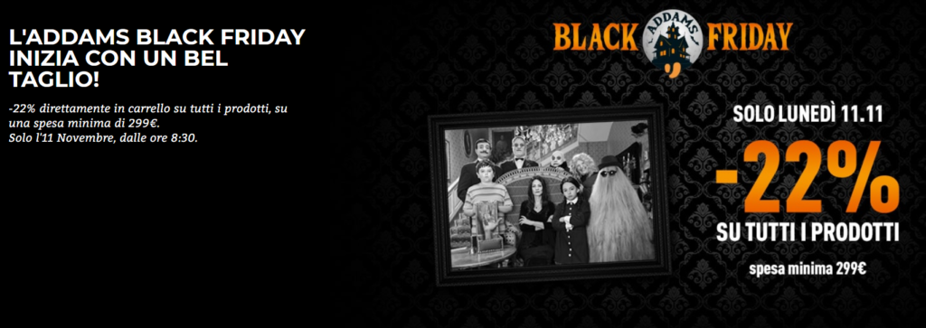 Addams Black Friday Unieuro: l’11 Novembre c’è il 22% di sconto su tutto!