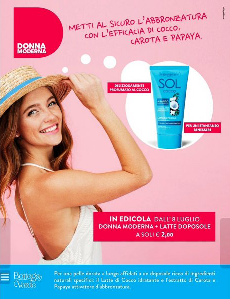 Arriverà presto in edicola il nuovo numero di Donna Moderna (n° 30), con il Latte Doposole Bottega Verde in allegato!