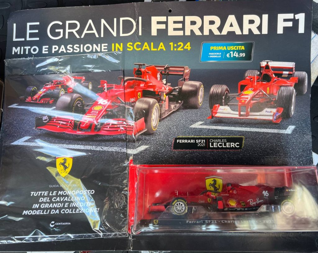 La prima uscita è già in edicola a soli 14,99€: si tratta della Ferrari SF21 – Charles Leclerc – 2021, modello curato nei minimi dettagli, custodito in una preziosa teca da esposizione e accompagnato da un fascicolo illustrativo.