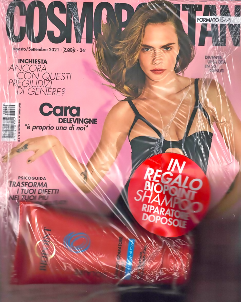 Cosmopolitan presenta in edicola il suo nuovo numero agosto/settembre con un prodotto in omaggio pazzesco: lo Shampoo Riparatore Doposole Biopoint è tuo al prezzo di copertina!