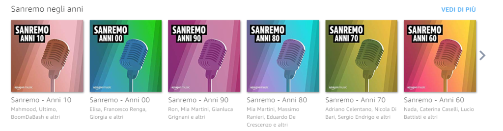 Per l’occasione Amazon ha lanciato anche delle playlist esclusive dedicate a Sanremo che troverai disponibili sulla piattaforma Music Unlimited.