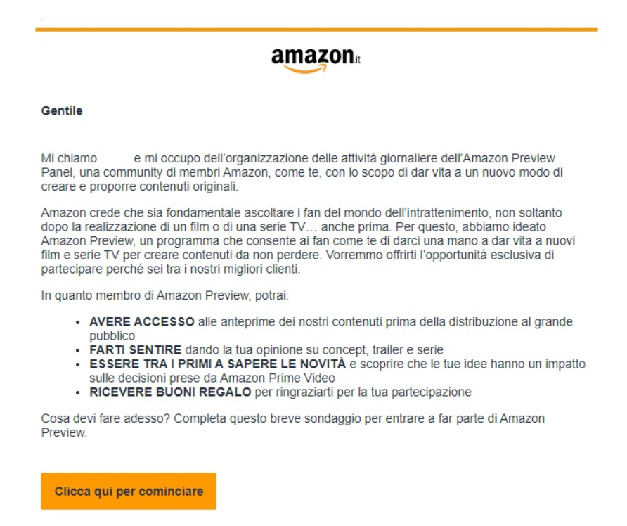 L’invito ad Amazon Preview può arrivare soltanto da Amazon stessa. L’email di invito apparirà come questa: