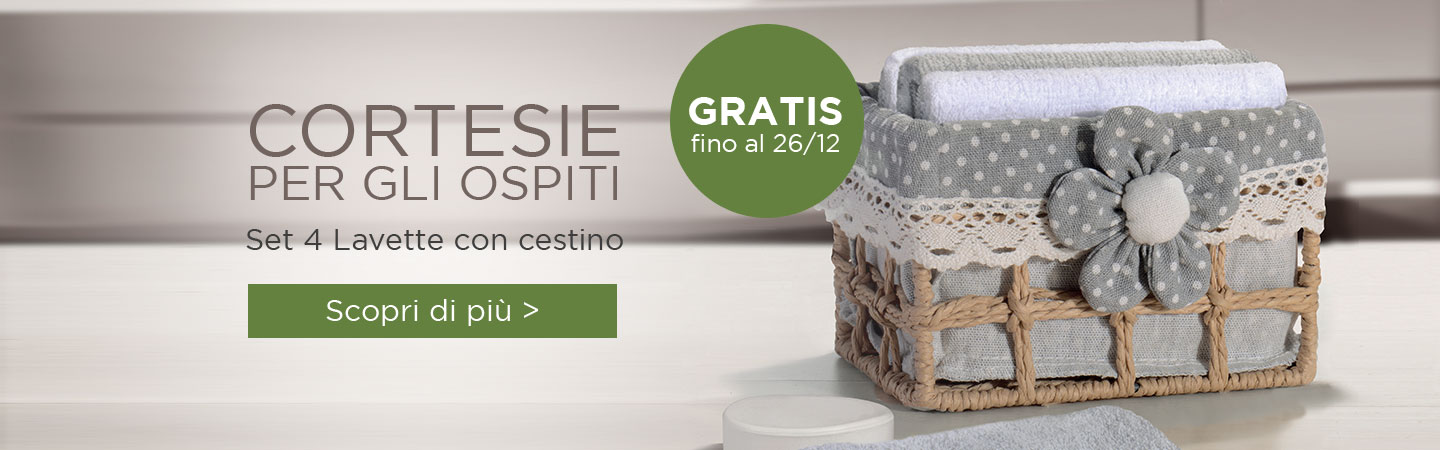 Ricevi un Set di 4 Lavette con cestino gratuitamente con una spesa minima di 20€, fino al 26 dicembre 2018.