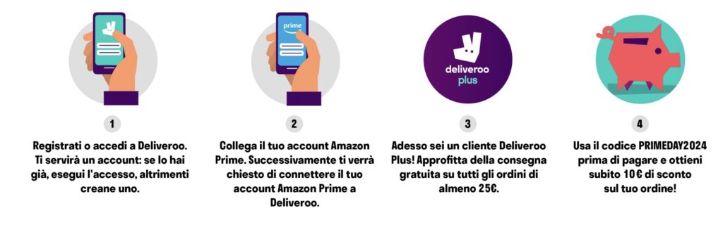 Per poter usufruire dell’offerta di Deliveroo Plus, gli utenti Prime dovranno attivare manualmente il servizio: