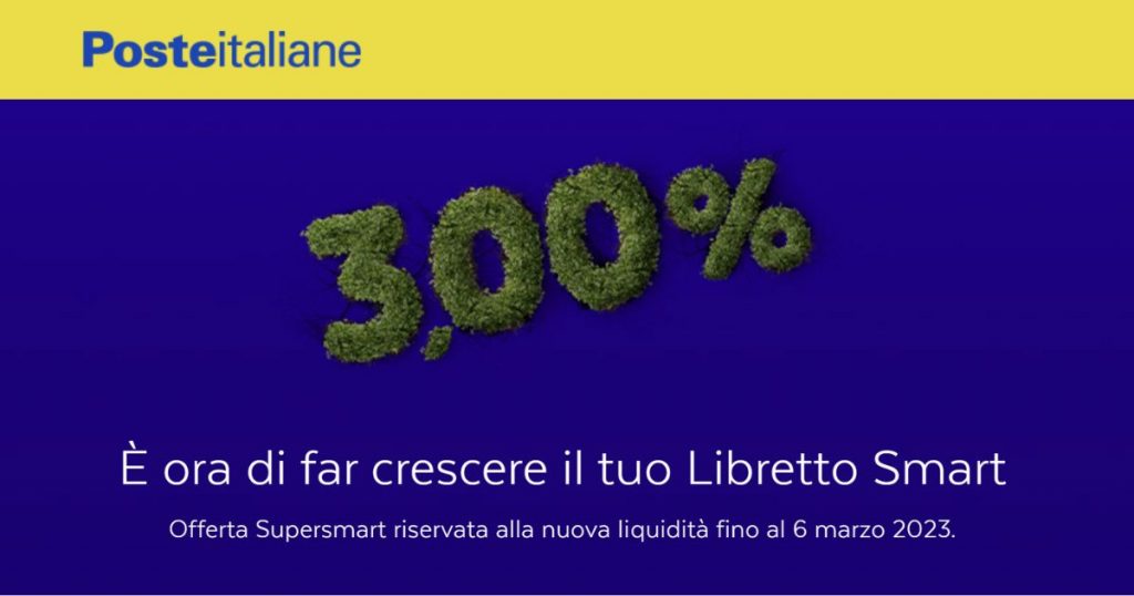 Fai crescere il tuo libretto Smart con Poste Italiane: attiva l’offerta Supersmart Premium riservata alla nuova liquidità fino al 6 marzo 2023!