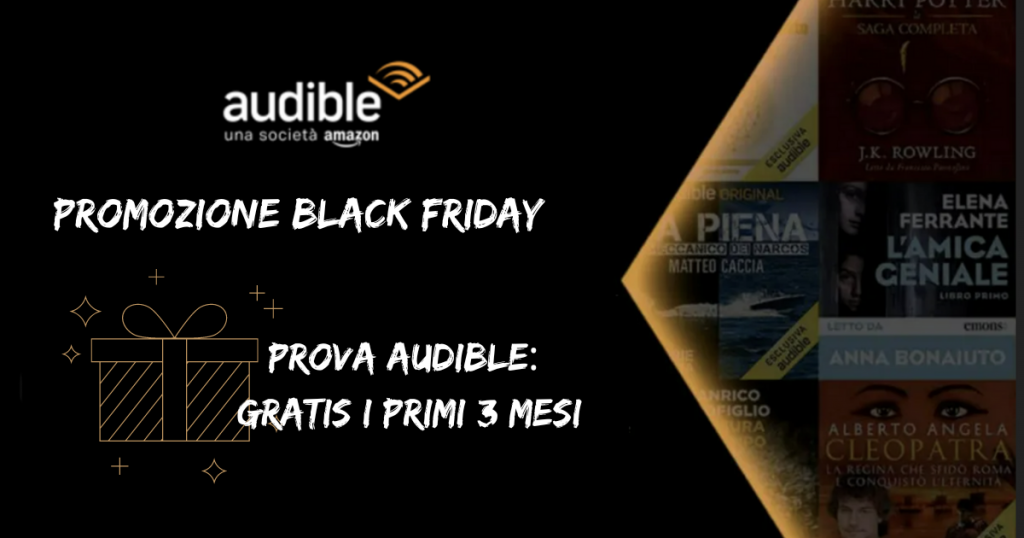 Sei amante di audiolibri e podcast? Amazon ha deciso di farti un regalo per il Black Friday: iscriviti ora ad Audible e i primi 90 giorni sono gratis!