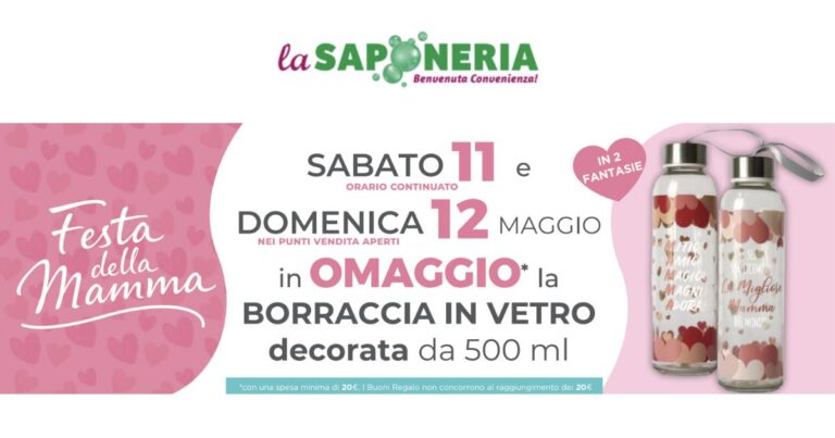 La Saponeria “Festa della Mamma”: ricevi una borraccia in omaggio con la tua spesa!