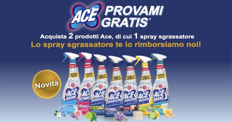 Con la nuova iniziativa cashback ACE, puoi richiedere il rimborso integrale di uno Spray Sgrassatore, acquistandolo insieme ad un altro prodotto ACE! L’iniziativa è attiva fino al 30 giugno 2024. Ma scopriamo la promozione…