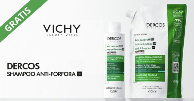 Vichy ti offre 1 campione omaggio di shampoo della linea Dercos, pensato appositamente per trattare e combattere la forfora!