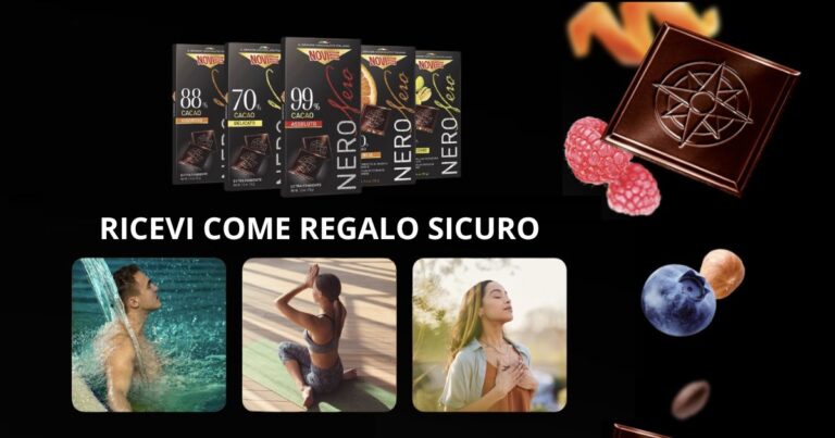 Acquistando 2 prodotti Novi Nero Nero, puoi richiedere come premio certo un trattamento benessere o una lezione fitness a tua scelta. Inoltre, puoi provare a vincere un voucher di 1.000€ per un weekend di relax.