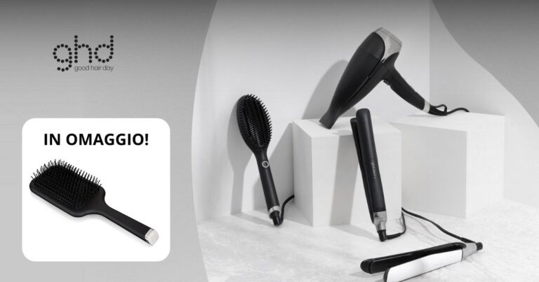 Ghd ti offre in omaggio una spazzola paddle brush con l'acquisto di un tool professionale. Inoltre, comprando una Chronos o Chronos Max e restuituendo una styler vecchia, ricevi anche un rimborso di 100€.