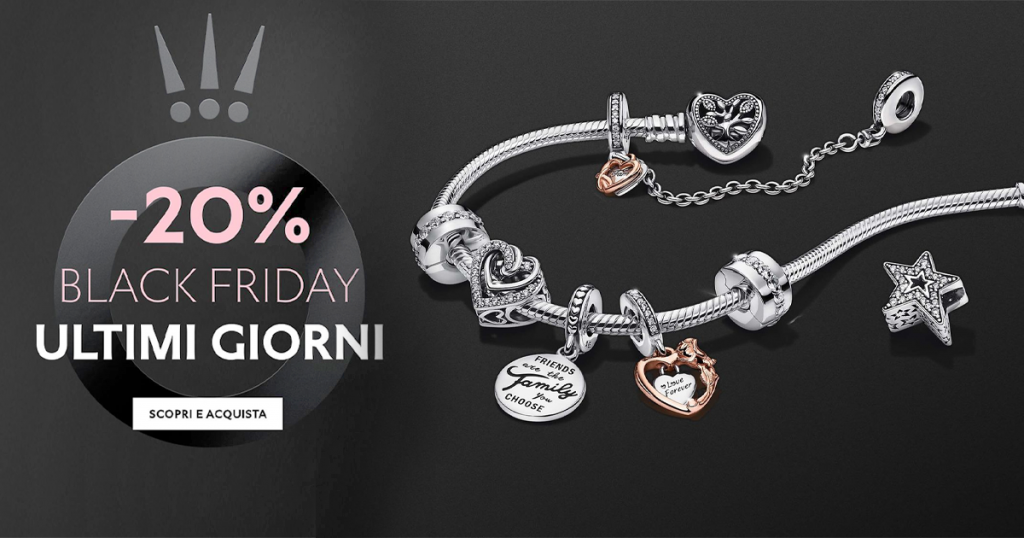 Approfitta del Black Friday di Pandora e risparmia il 20% su una vasta selezione di gioielli fino al 29 novembre!