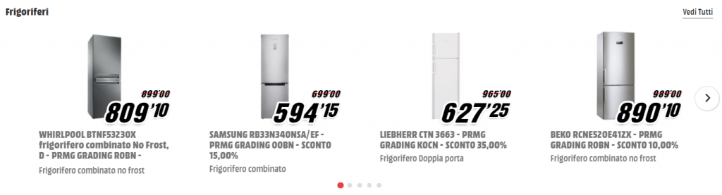 Tra i prodotti ci sono Robot da Cucina, Lavatrici, Frigoriferi, TV, Tablet, Aspirapolvere, Smartphone, e tanto altro.