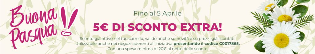 In occasione della Pasqua Bottega Verde regala un codice sconto di 5 euro da utilizzare per tutti gli acquisti che vuoi: minimo di spesa 20 euro, valido anche nei negozi fisici!