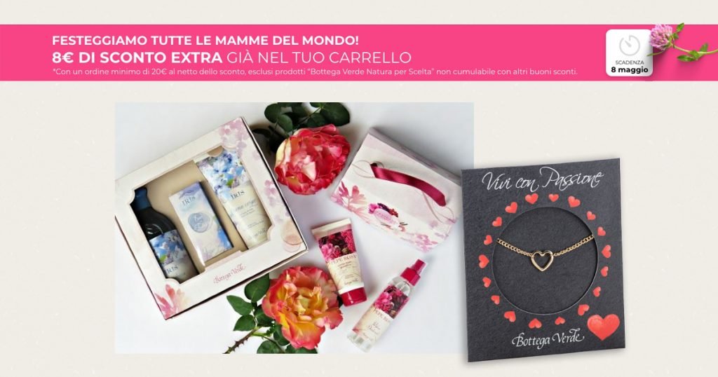 Bottega Verde “Festa della Mamma”: 8€ di extra sconto su tutto + bracciale Cuore in omaggio!