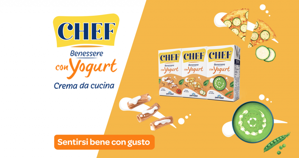 Chef porta il Benessere con la nuova crema da cucina, che unisce la cremosità dei prodotti del marchio e il gusto fresco dello Yogurt.