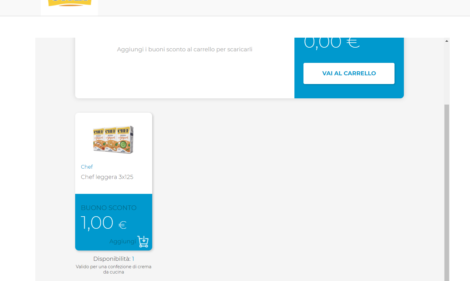 Il coupon è utilizzabile presso i principali supermercati ed ipermercati entro la data indicata su di esso, per l’acquisto di una confezione 3×125 di Chef Benessere con Yogurt.