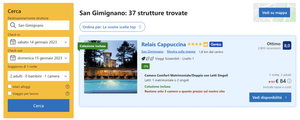 Esempio di offerta su Booking