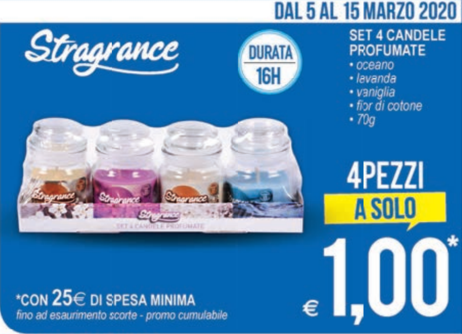 Ritorna una promozione di successo di MD a distanza di poco più di un anno: ottieni a solo 1€ un Set di 4 Candele profumate Stragrance (280g)!