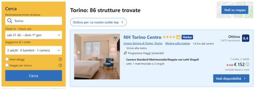 Situato a meno di 200 metri dalla Galleria d’Arte Moderna, l’hotel NH Torino Centro abbassa notevolmente la media dei prezzi del capoluogo piemontese regalando una super offerta per questo imminente Capodanno: un weekend in camera standard matrimoniale a soli 76€ a testa.