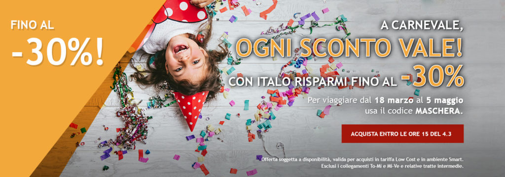Festeggia il Carnevale Italo Treno e viaggia con uno sconto del 30%!