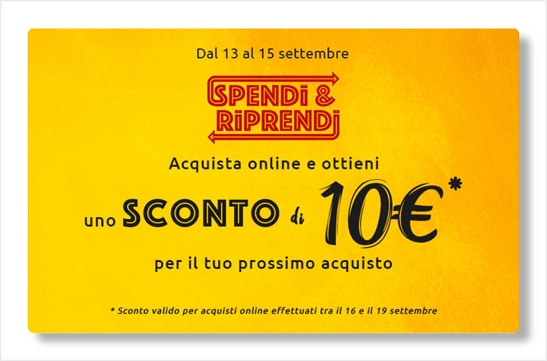 Il buono sconto di 10€ che riceverai potrà essere utilizzato solo dal 16 al 19 settembre 2019.