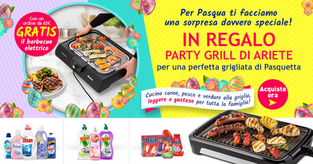 Casa Henkel oggi ti regala oggi una griglia elettrica per barbecue, con soli 65€ di spesa: ideale per le vacanze di Pasqua e la spedizione è gratuita!