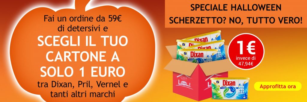Fino alle 23:59 del 4 novembre 2021, acquista tutti i tuoi prodotti preferiti a scelta tra Detersivi per il bucato e la pulizia della casa e con un ordine da almeno 59€ potrai scegliere direttamente nel carrello il tuo Cartone di detersivi (aggiungendo 1 solo euro in più)!