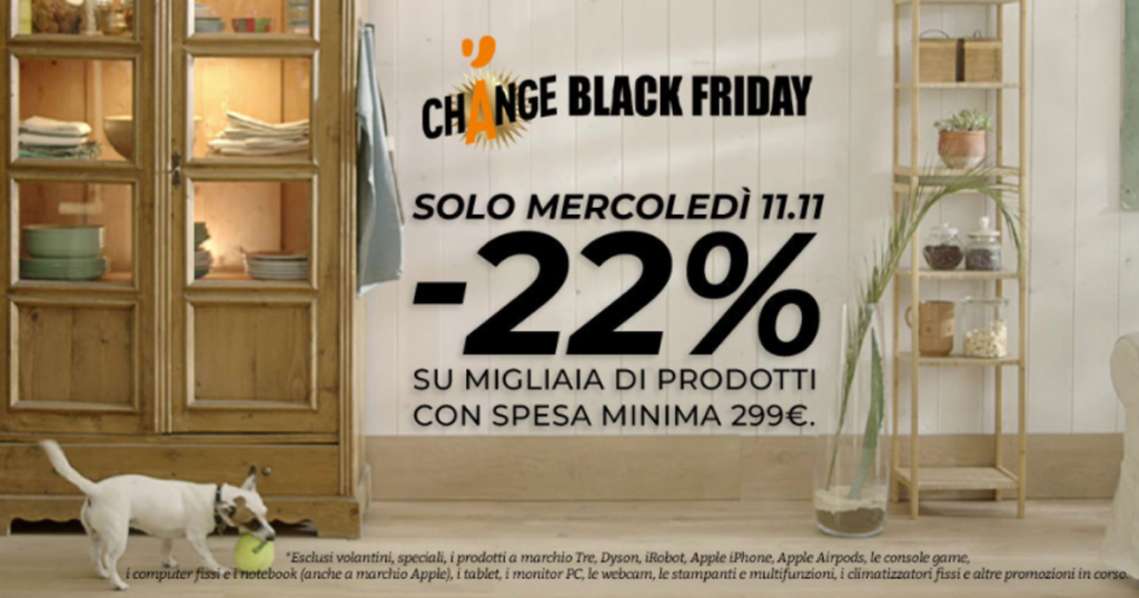 Change Black Friday Unieuro: 22% di sconto su migliaia di prodotti!