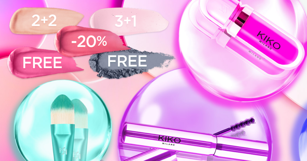 Approfitta della combo di promozioni da KIKO! Acquista 4 prodotti al prezzo di 2, spedizione GRATIS sopra ai 15€ e diverse altre promo attive al momento!