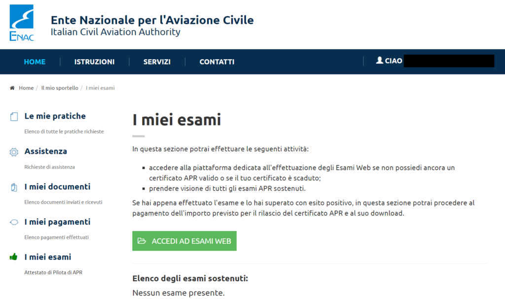 Potrai effettuare immediatamente l’esame andando nella sezione I miei esami e poi su Accedi ad Esami Web.