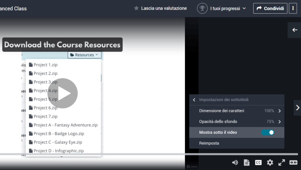 Ma non disperare! Oggi vogliamo insegnarti un piccolo e semplice trucchetto che ti permetterà di visualizzare i sottotitoli in italiano per qualsiasi corso Udemy!