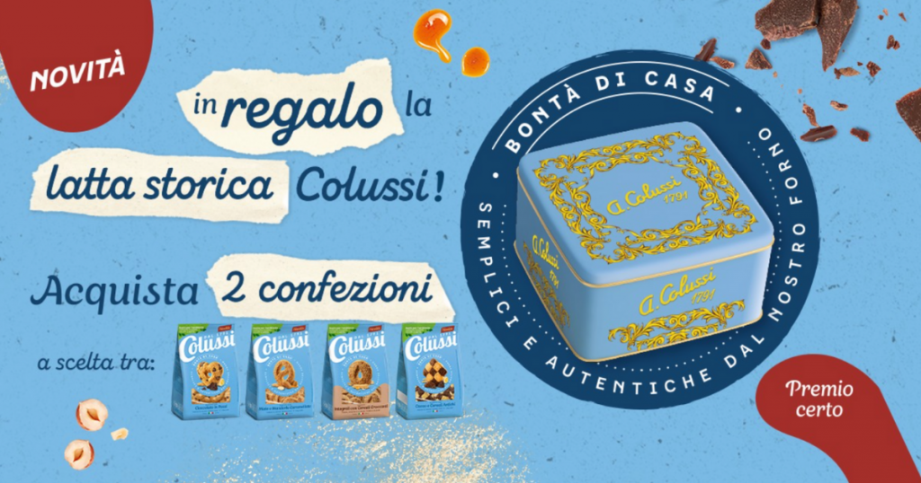 Per ulteriori informazioni su come ricevere la latta Colussi in omaggio, leggi il regolamento completo dell’iniziativa.