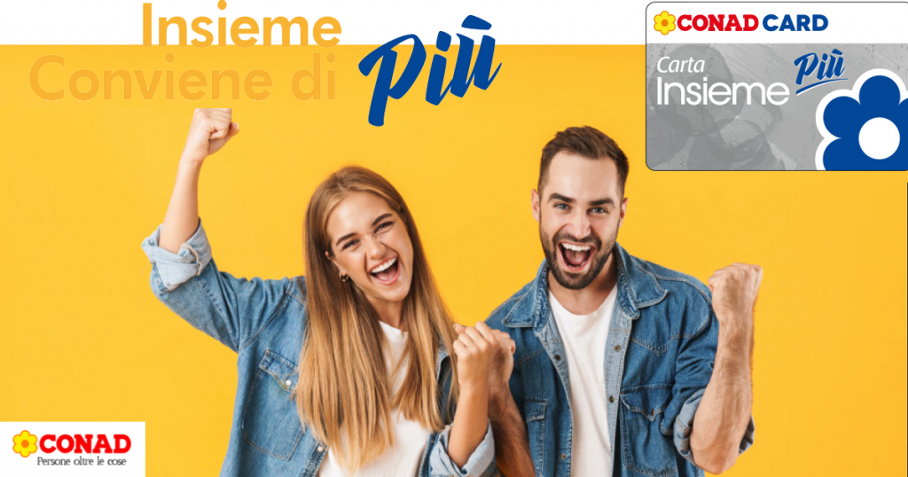 Conad sta promuovendo una nuova interessantissima iniziativa: sottoscrivendo la Carta Insieme Più (prepagata) ottieni 10 buoni spesa da 5 euro!
