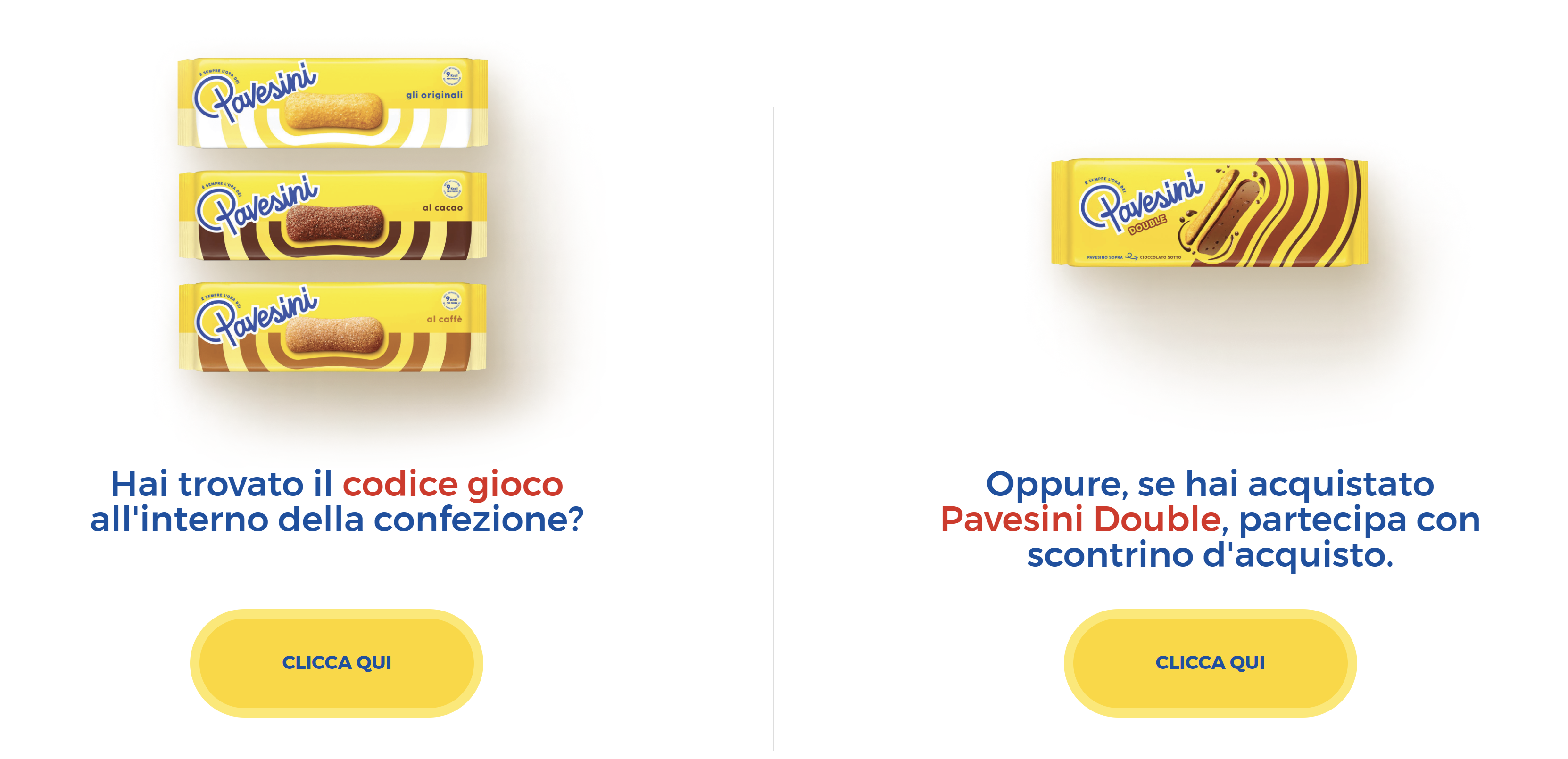Collegati al sito web dedicato al concorso e, a seconda del prodotto in promozione acquistato clicca sul pulsante “Clicca qui” idoneo (come in foto).