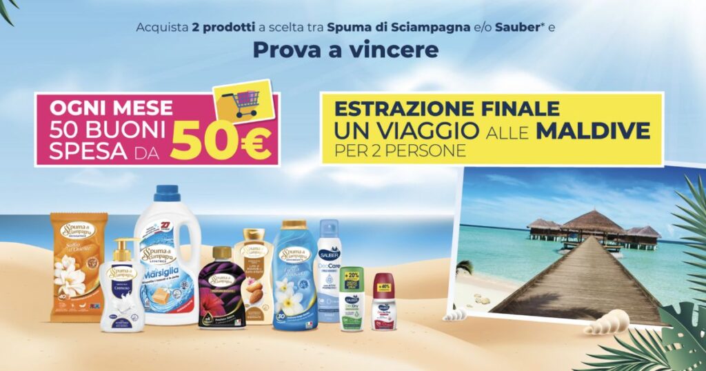 Non perderti il nuovo concorso “Paradiso da vivere”: acquistando prodotti a marchio Spuma di Sciampagna e/o Sauber puoi vincere 1 buono spesa del valore di 50€!