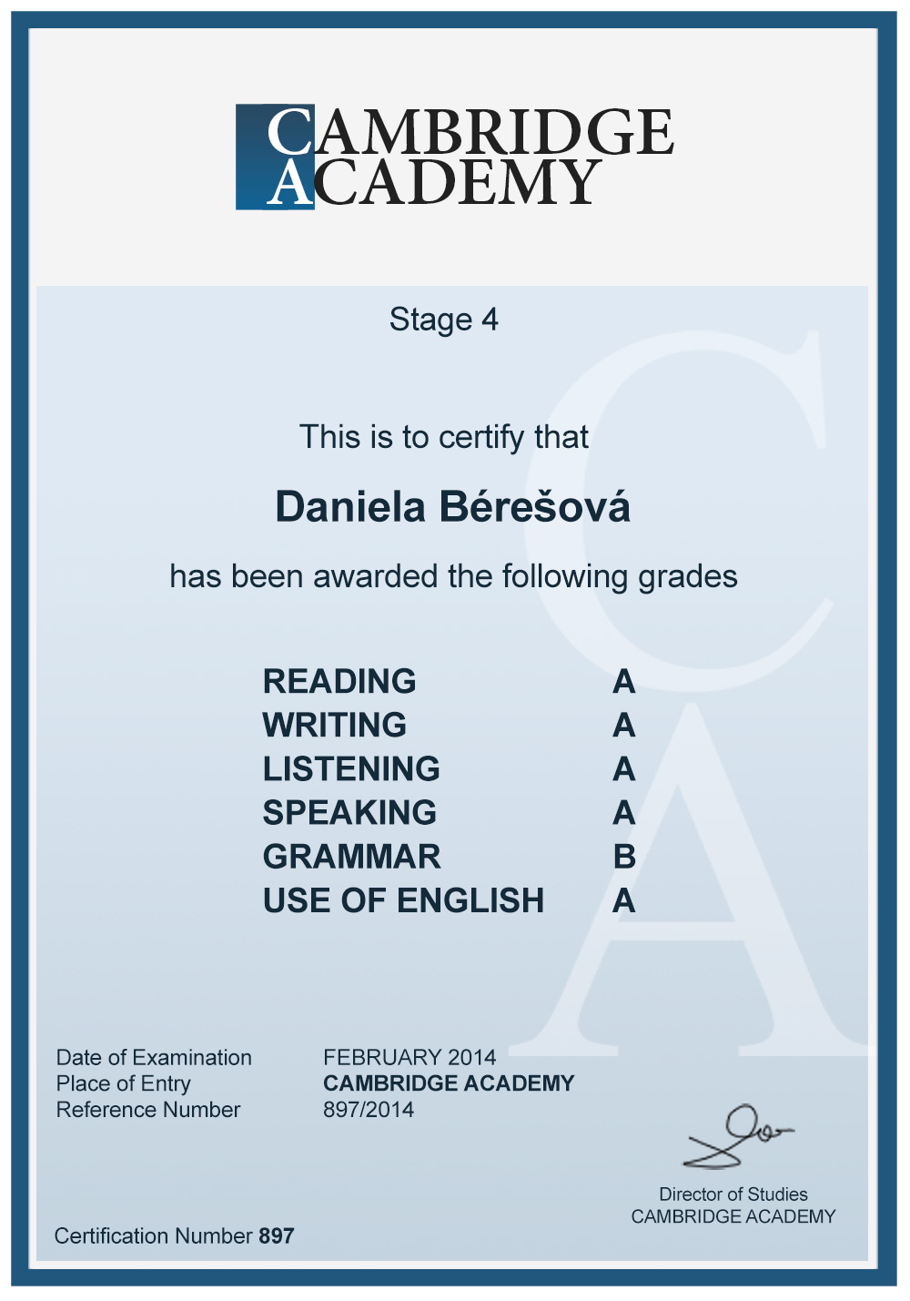 Al termine del corso verrà rilasciato un attestato dalla Cambridge Academy di valore internazionale, accettato da aziende del calibro di BP, Volkswagen, Samsung, Toyota, Phillips, General Motors, LG, Allianz, Statoil, AXA, Hewlett-Packard, Fiat, Tesco, IBM e molti altri!
