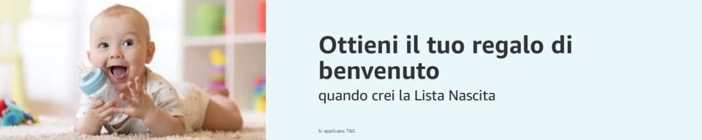 Crea una Lista Nascita su Amazon ed aggiungici almeno 20,00€ di prodotti venduti e spediti da Amazon.
