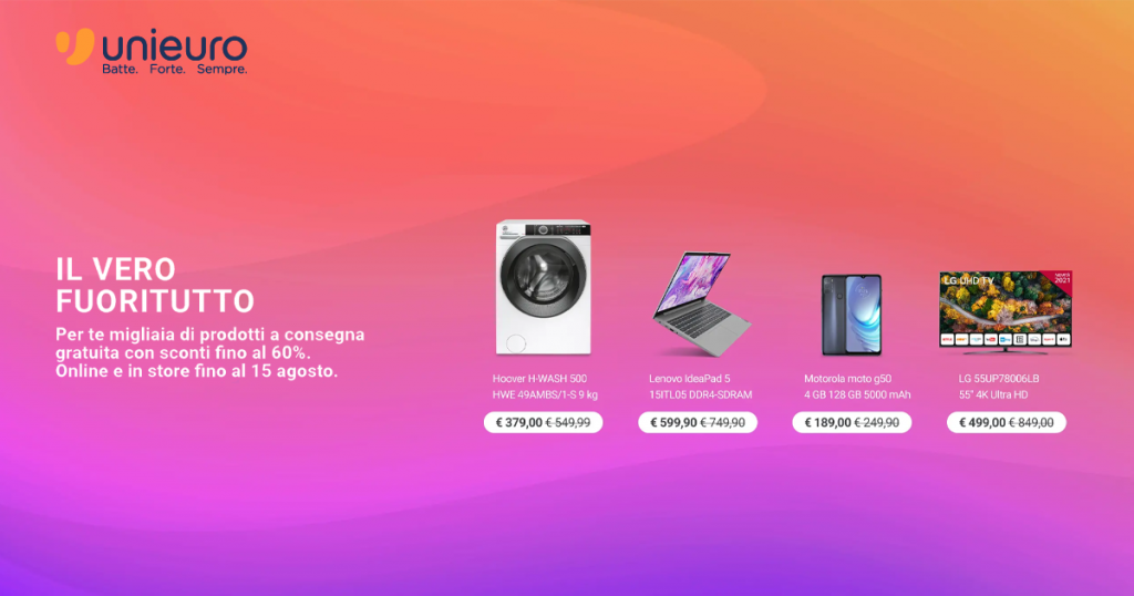 Pronto per il “Vero Fuoritutto” di Unieuro? Dal 2 al 15 agosto 2021, migliaia di prodotti sono disponibili con sconti fino al 60%!