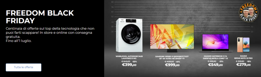 Unieuro si colora di nero… e di libertà! Con il Freedom Black Friday, un’ampia selezione di ottimi prodotti si trova in forte sconto!