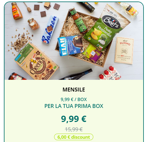 Se anche tu vuoi provare questo servizio, esso costa 15,99€ al mese, ma grazie al nostro codice sconto il primo mese pagherai soltanto 9,99€ con spedizione gratuita!