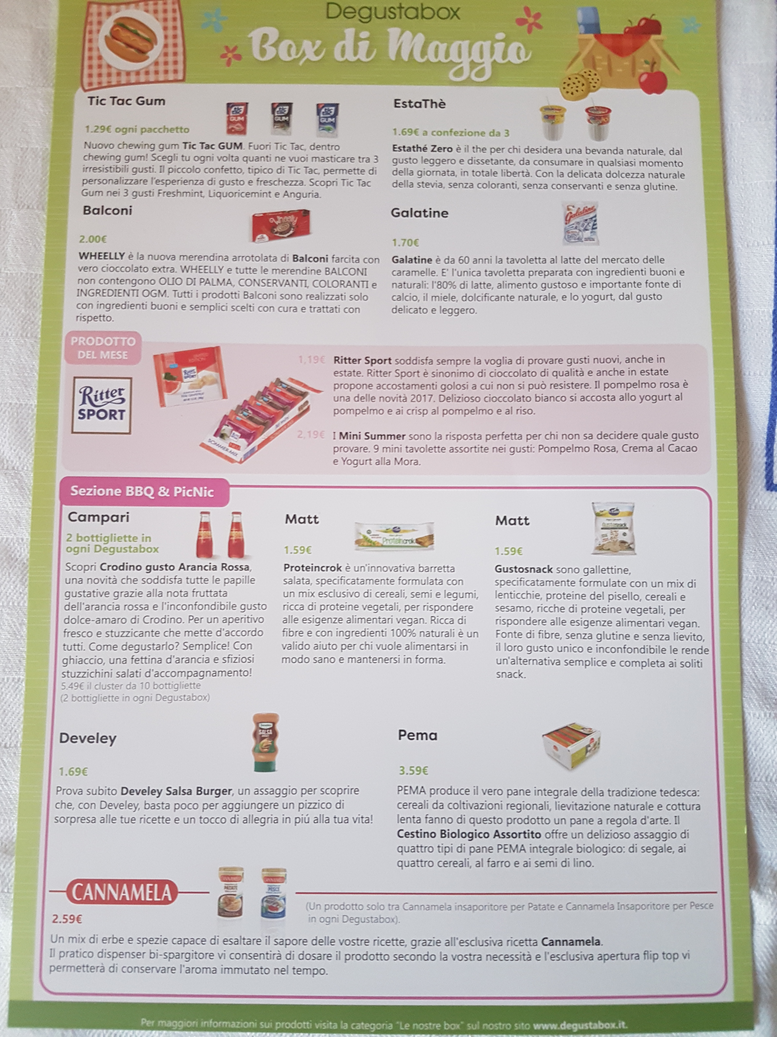 Di seguito nel dettaglio l’elenco dei prodotti contenuti nel box di questo mese, con il rispettivo valore: