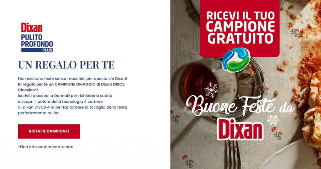 DonnaD, rivista ufficiale del gruppo Henkel Italia, per Natale torna ad offrire ben due campioni omaggio, tra i più richiesti di sempre: stiamo parlando di Dixan Discs 4-in-1 Classico e L’Acchiappacolore Massima Protezione!