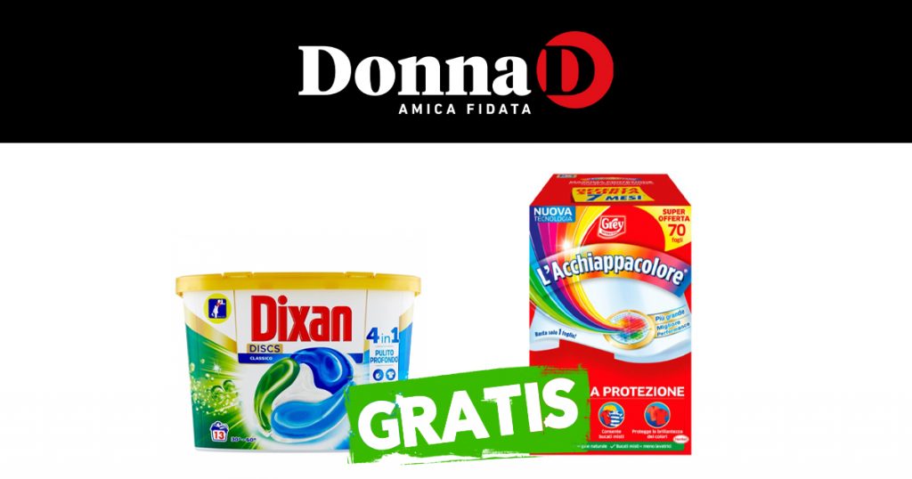 DonnaD ti regala ben due campioni omaggio: richiedi subito Dixan Discs e L’Acchiappacolore!