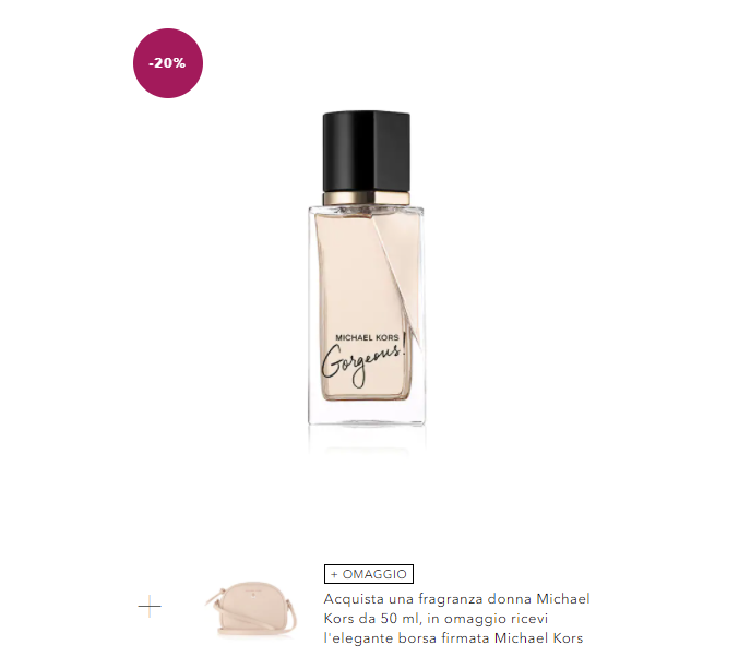 Oltre ai tantissimi prodotti in saldo sul sito, con sconti a partire dal 20%, ti aspetta per ancora pochi giorni uno splendido omaggio: la borsa firmata Michael Kors, che potrà essere tua a costo zero acquistando una fragranza femminile del brand! E se ancora non ti basta, potrai persino scegliere due campioncini gratuiti da ricevere con il tuo ordine!